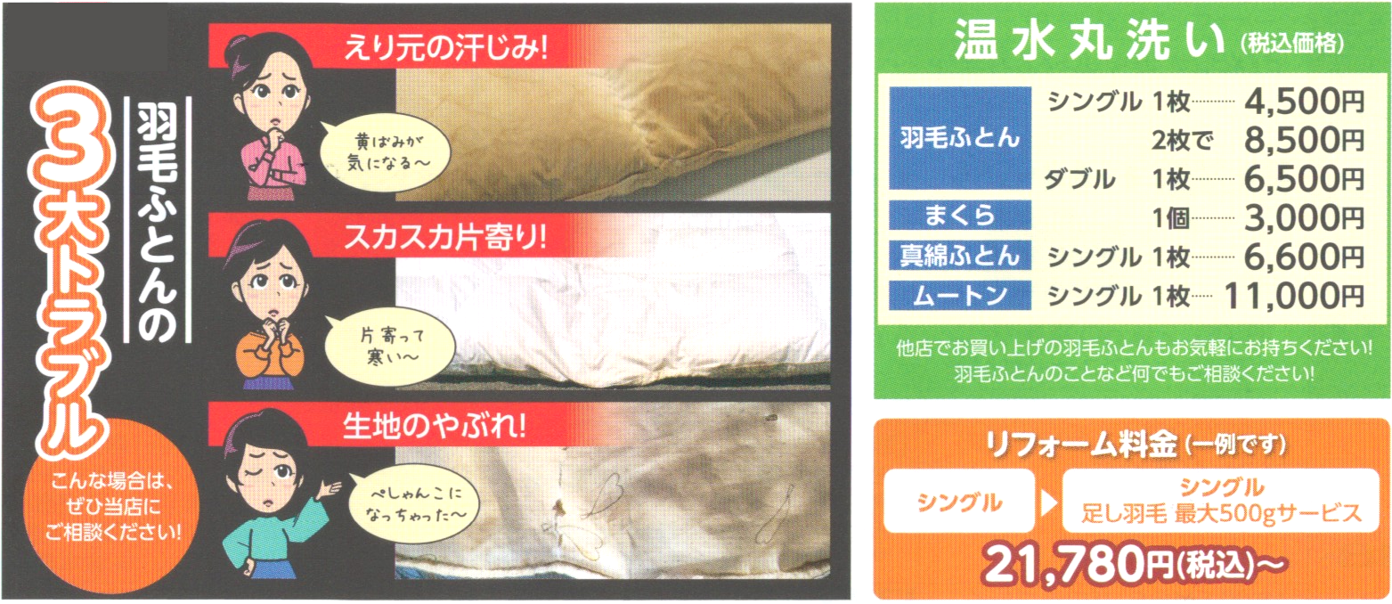 他店でお買い上げの羽毛ふとんもお気軽にお持ちください!羽毛ふとんのことなど何でもご相談ください!